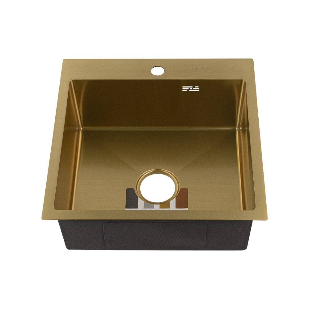 Мойка нерж. FABIA PROFI врезная 50х50 см.Золото толщ. 3,0 х1,0мм гл.200 мм с корзиной