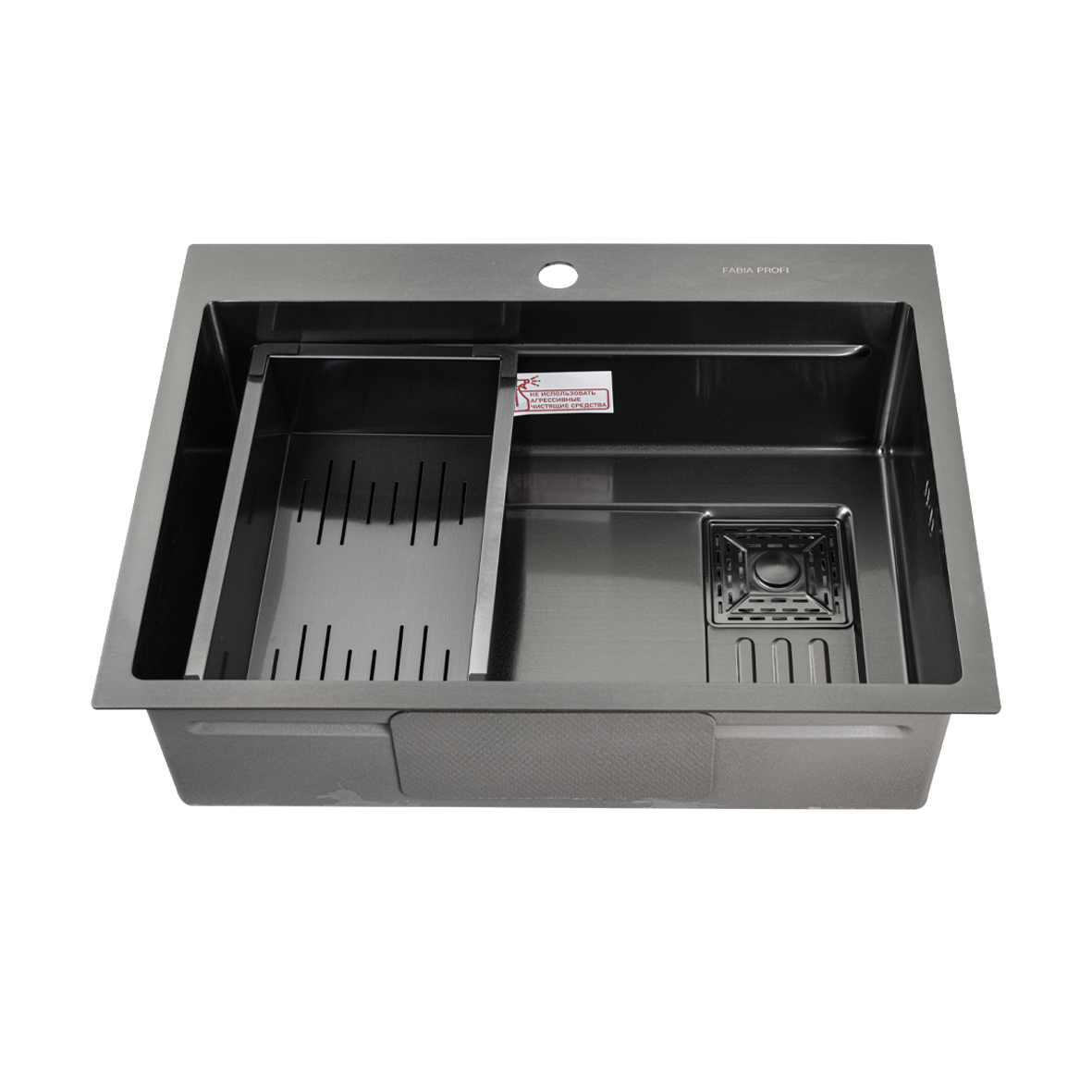 Купить Мойка нерж. FABIA PROFI врезная 65х50 см.толщ. 3,0 х0,8мм гл.200 мм с корзиной,Графит в магазине Индустрия Сити по выгодной цене. Мойка нерж. FABIA PROFI врезная 65х50 см.толщ. 3,0 х0,8мм гл.200 мм с корзиной,Графит: описание, фото, характеристики, отзывы покупателей, инструкция.