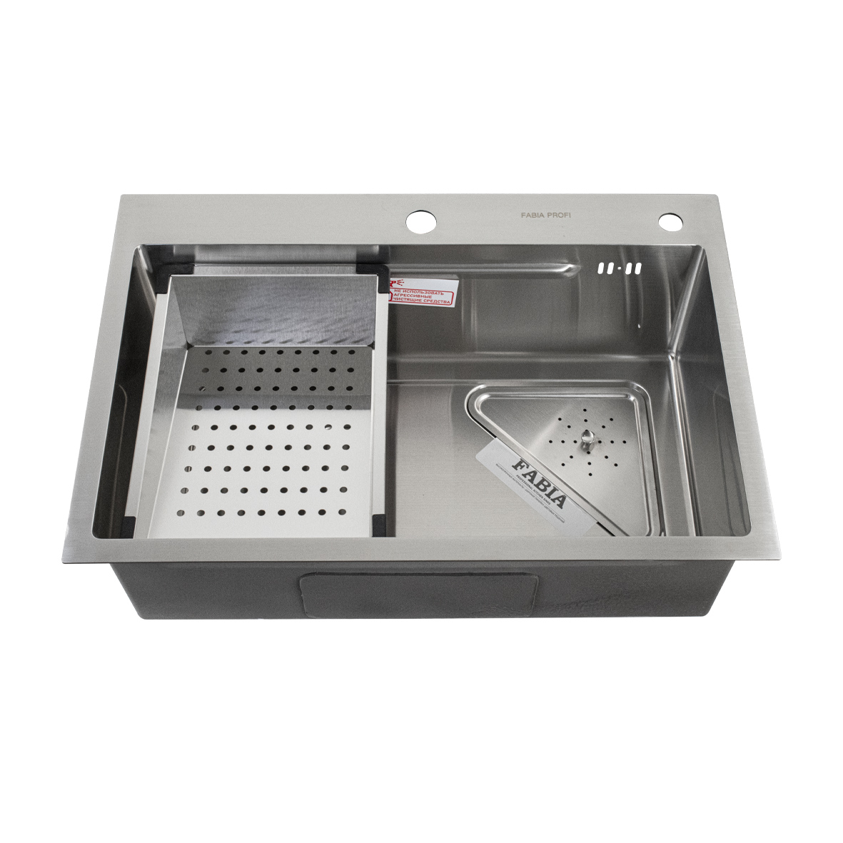 Мойка нерж. FABIA PROFI врезная 68х45 см. толщ 3,0 х0,9мм гл.200 мм +угловой сифон с корзиной