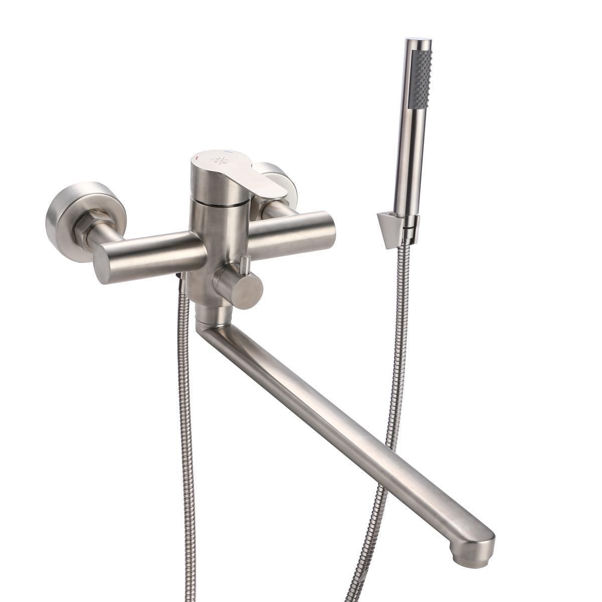 Купить Смеситель РМС для ванны с душем нерж. с плоским изливом 35 см в магазине Индустрия Сити по выгодной цене. Смеситель РМС для ванны с душем нерж. с плоским изливом 35 см: описание, фото, характеристики, отзывы покупателей, инструкция.