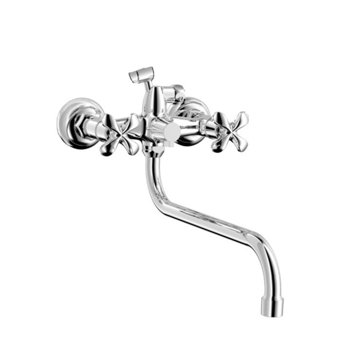 Пластиковый аэратор с функцией легкой очистки, Кран-буксы с керамическими пластинами, Переключатель с керамическими пластинами с функцией gentle swich, Аксессуары в комплекте (5-функциональная лейка с функцией легкой очистки, шланг 1,5м, настенное крепление), Металлические рукоятки