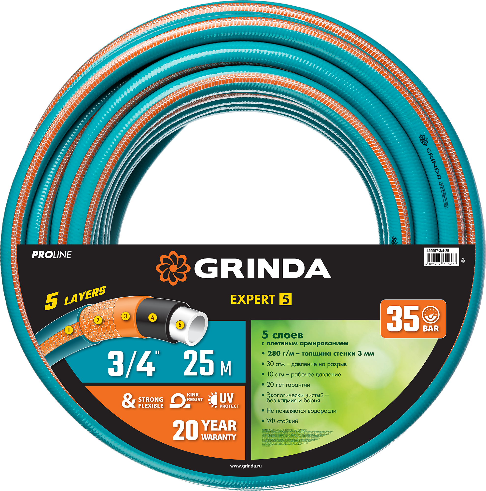 Купить Шланг поливочный GRINDA PROLine EXPERT 5 3/4"х25 м армир.,5-ти слойный,30атм в магазине Индустрия Сити по выгодной цене. Шланг поливочный GRINDA PROLine EXPERT 5 3/4"х25 м армир.,5-ти слойный,30атм: описание, фото, характеристики, отзывы покупателей, инструкция.